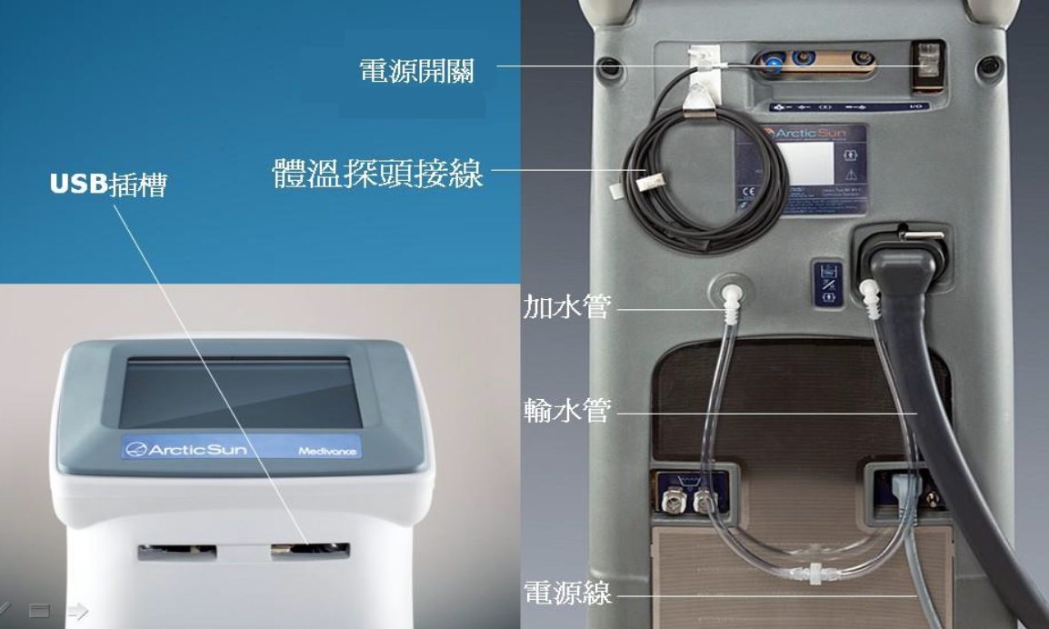 • Arctic Sun主機僅可使用蒸餾水或無菌水,若使用其他液體,將導致系統損壞。